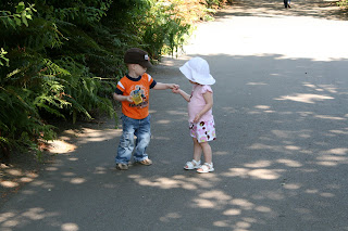 Ivy, PJ and Aliyah all on shoulders :) (PJ looks like he is going to jump off Jessica's shoulders to get to the truck)